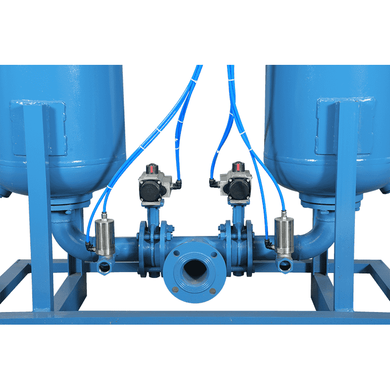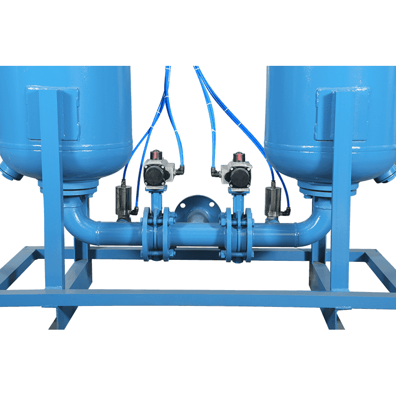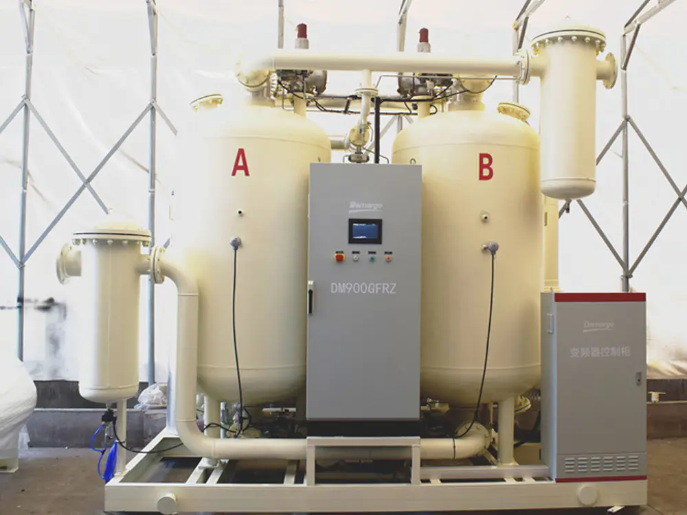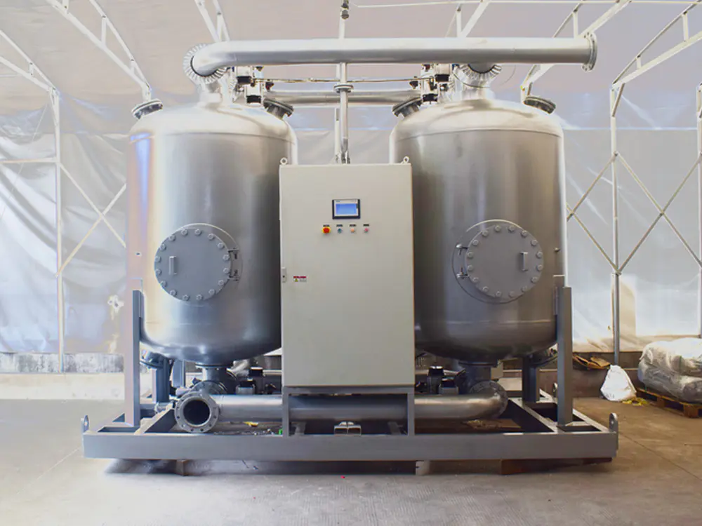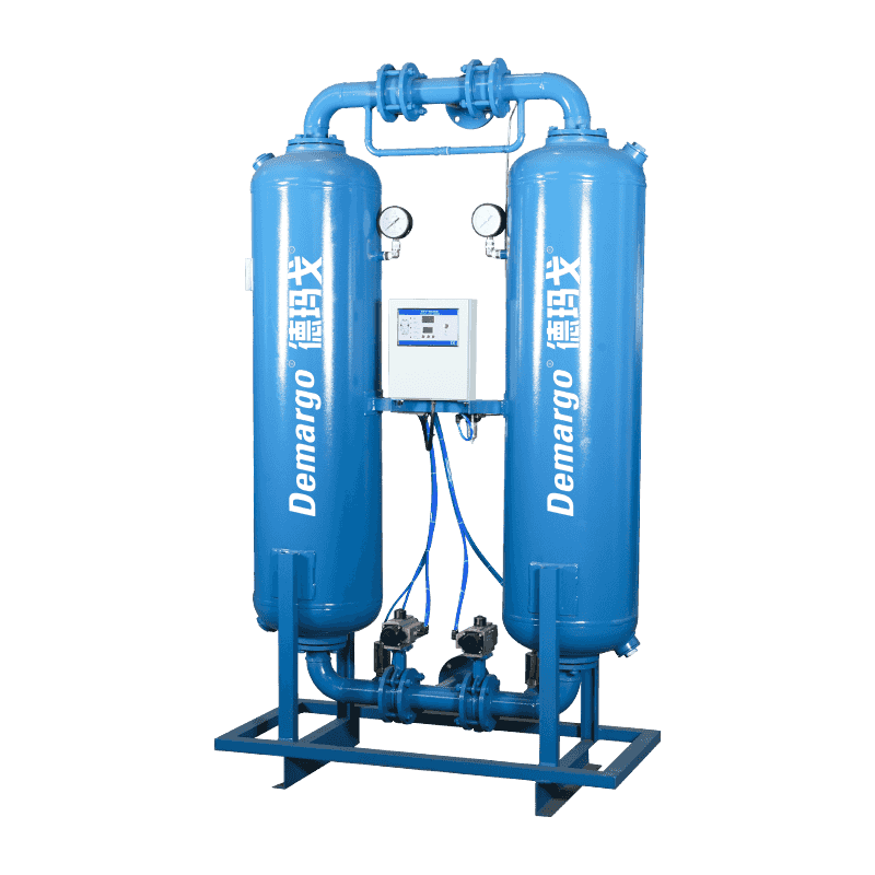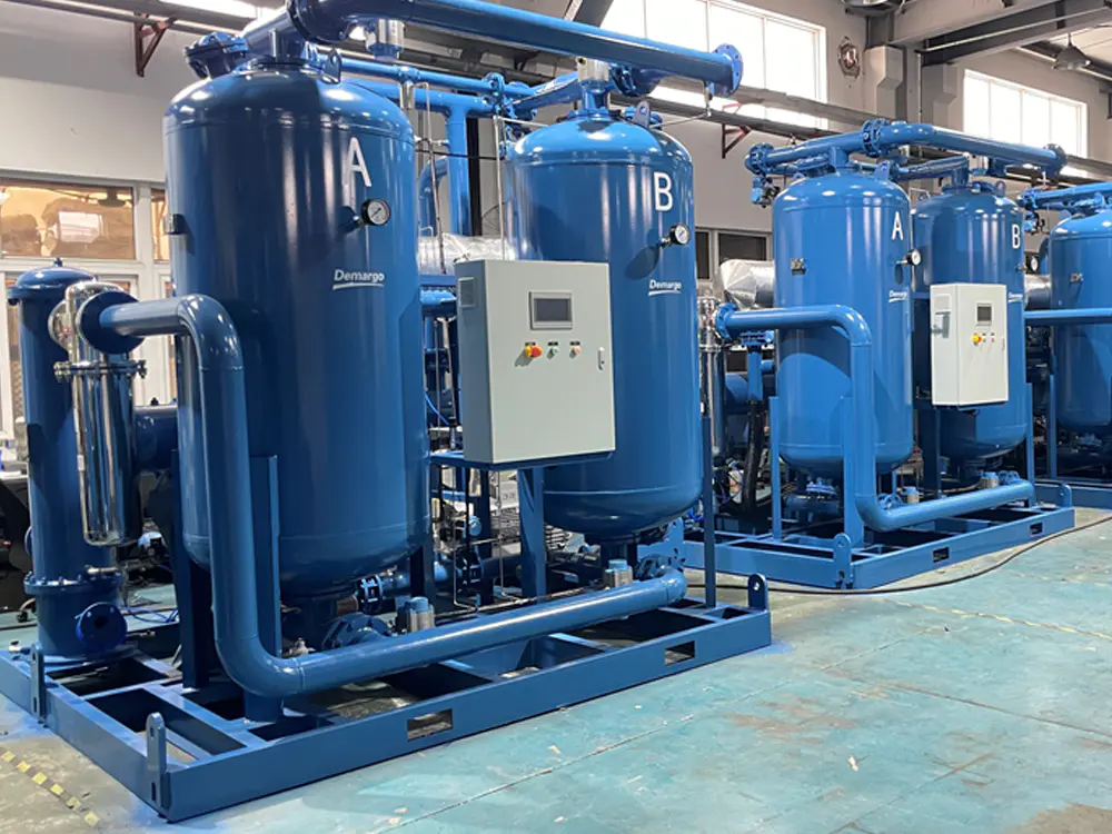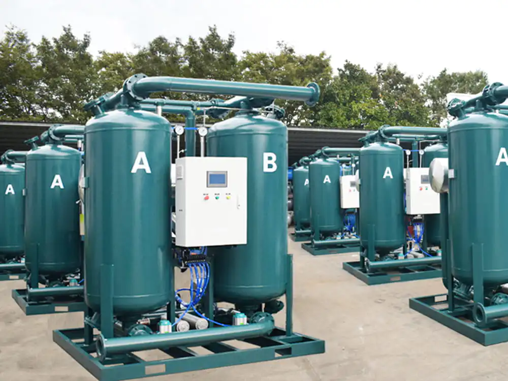 熱のない再生吸着乾燥機は、「圧力スイング吸着」を使用して乾燥効果を達成します。水蒸気を保持する空気の能力は圧力に反比例するため、乾燥後の空気の一部(再生ガスと呼ばれる)が減圧され、大気圧に拡大します。この圧力の変化により、拡張された空気乾燥が生じ、エアフローに接続されていない乾燥剤層(つまり、十分な水蒸気を吸収した乾燥塔)を流れるようになります。乾燥再生ガスは、乾燥剤の水分を吸収し、除湿の目的を達成するために乾燥機からそれを取り出します。