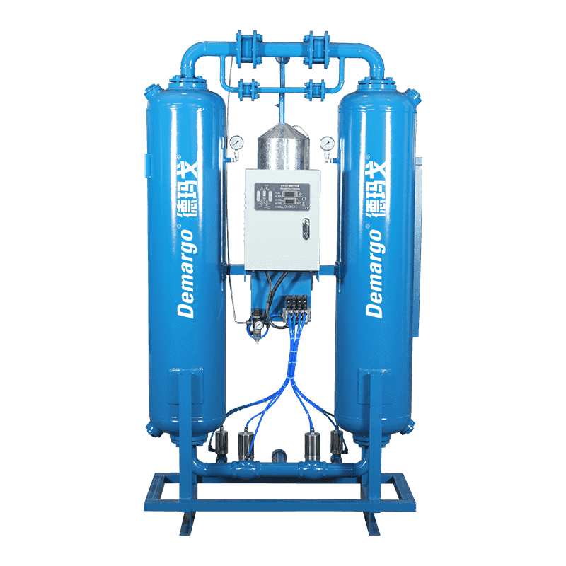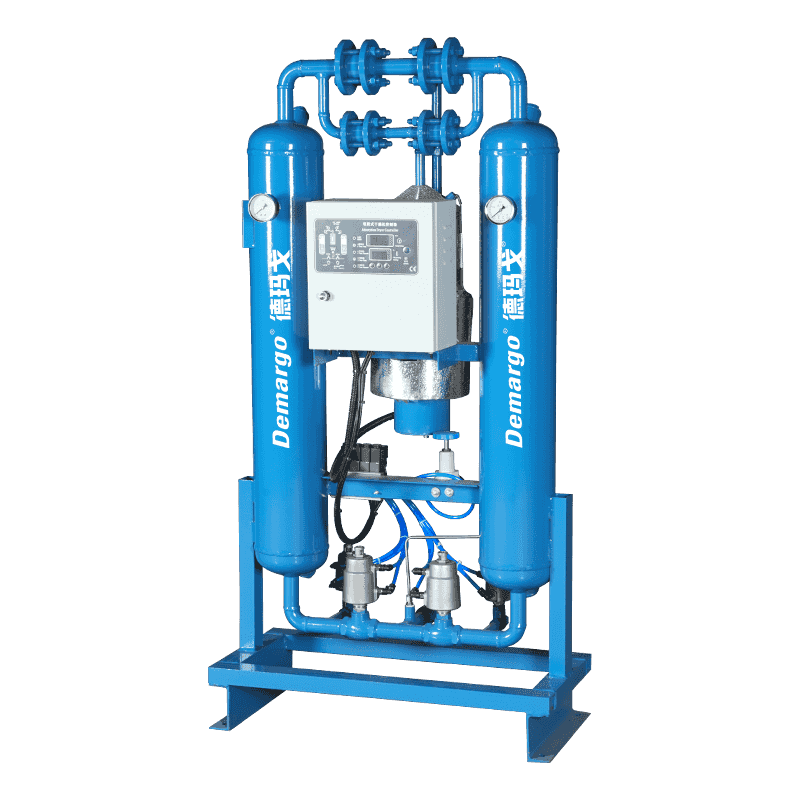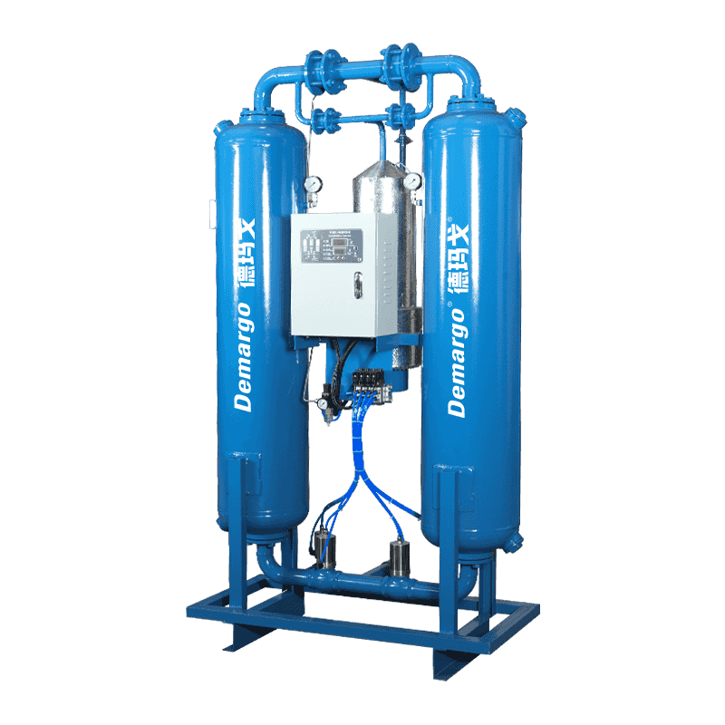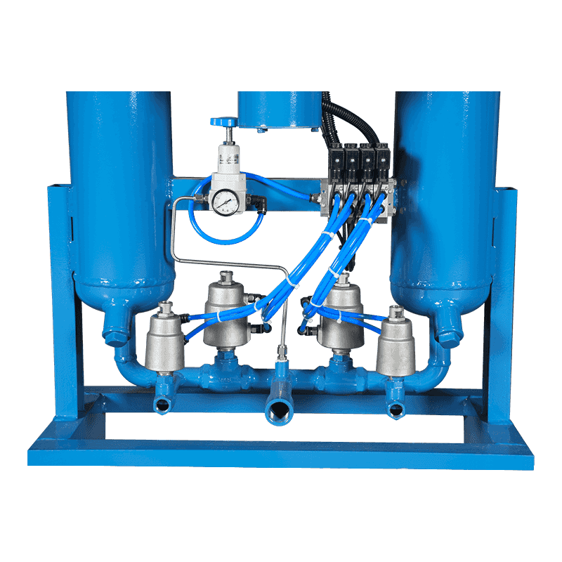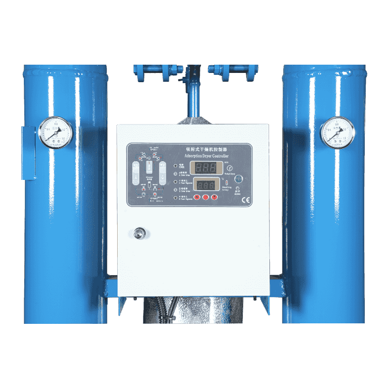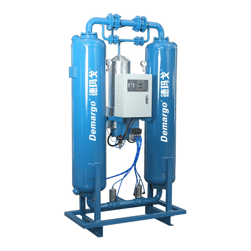 この一連の吸着乾燥機は、圧力スイング吸着と温度スイング吸着の利点を組み合わせています。室温での吸着(作業)および高水蒸気部分圧力:高温での脱着(再生)および低水蒸気部分圧力。吸着プロセス中に吸着剤によって吸着された湿気は、熱拡散の2つのメカニズムの組み合わせ作用と、再生プロセス中の再生ガス(乾燥空気加熱)の高圧差によって除去されます。