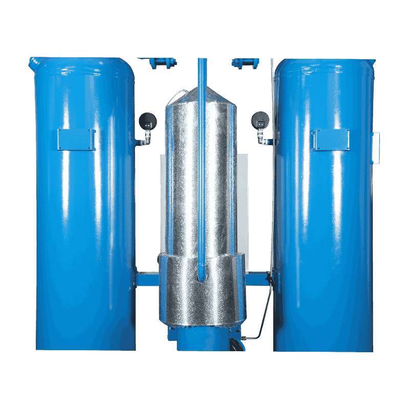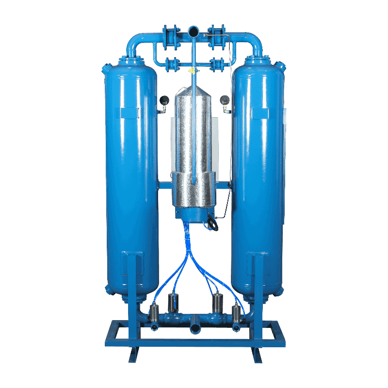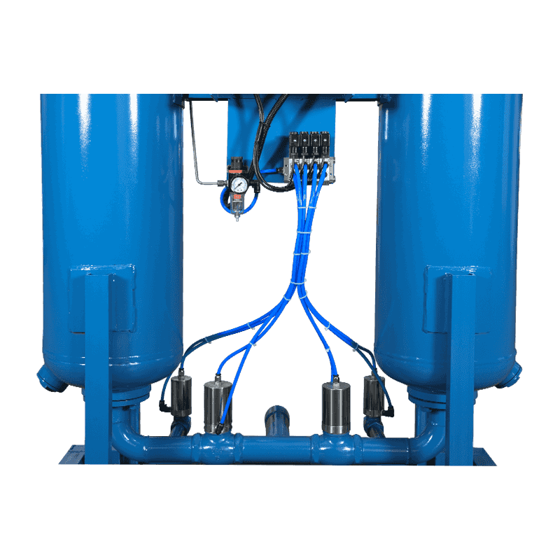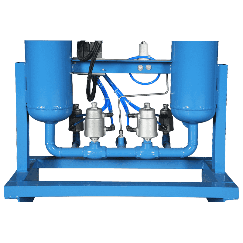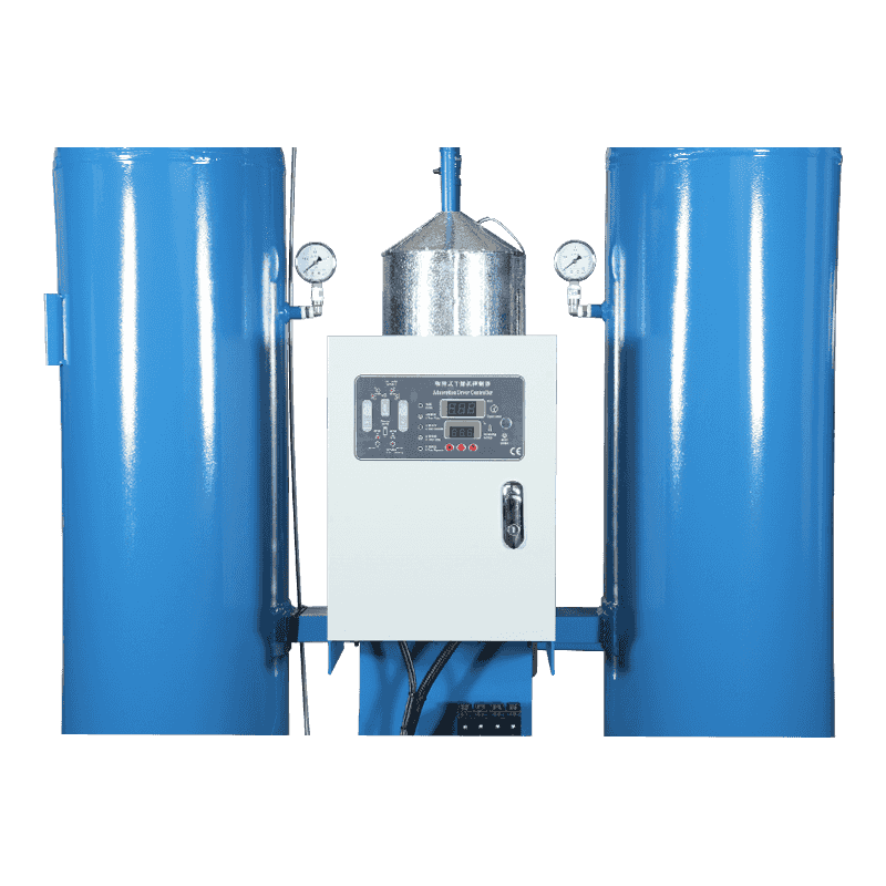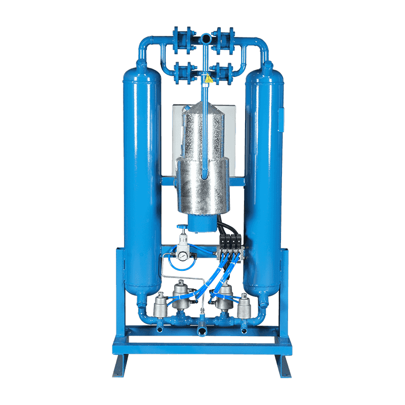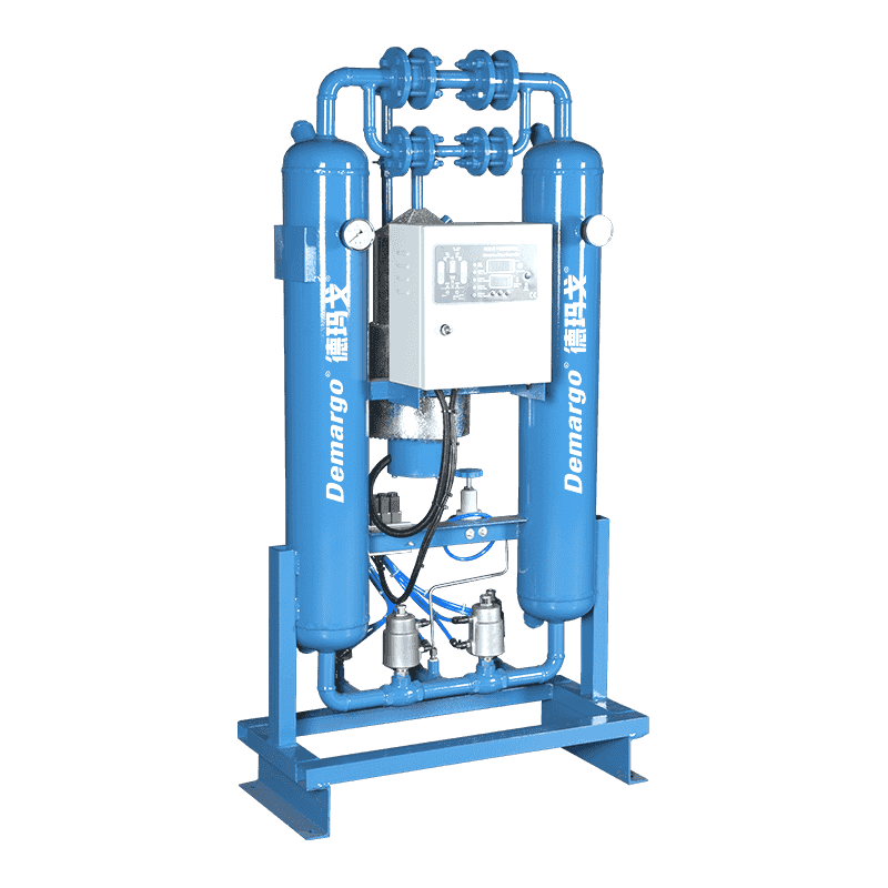 この一連の吸着乾燥機は、圧力スイング吸着と温度スイング吸着の利点を組み合わせています。室温での吸着(作業)および高水蒸気部分圧力:高温での脱着(再生)および低水蒸気部分圧力。吸着プロセス中に吸着剤によって吸着された湿気は、熱拡散の2つのメカニズムの組み合わせ作用と、再生プロセス中の再生ガス(乾燥空気加熱)の高圧差によって除去されます。