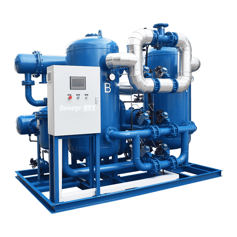 廃熱乾燥機は、油を含まないエアコンプレッサーの廃熱を使用して、吸着剤を加熱して再生します。圧縮空気システムの廃熱を最大限に活用しています。加熱装置を使用せずに、加熱ドライヤーの効果も実現でき、その省エネと高効率の特性を完全に実証します。完成したガスの露点は-40℃に達することができます。自己開発のPLCコントローラーが使用されます。これは、シングルチップマイクロコンピューターよりも安定して信頼性があります。コントロールバルブは、高品質のバタフライバルブを使用して、100万回以上トラブルのないスイッチングを確保しています。高度なダイバーター設計により、圧縮空気は吸着剤に均等に接触し、チャネリングの現象を完全に排除できます。