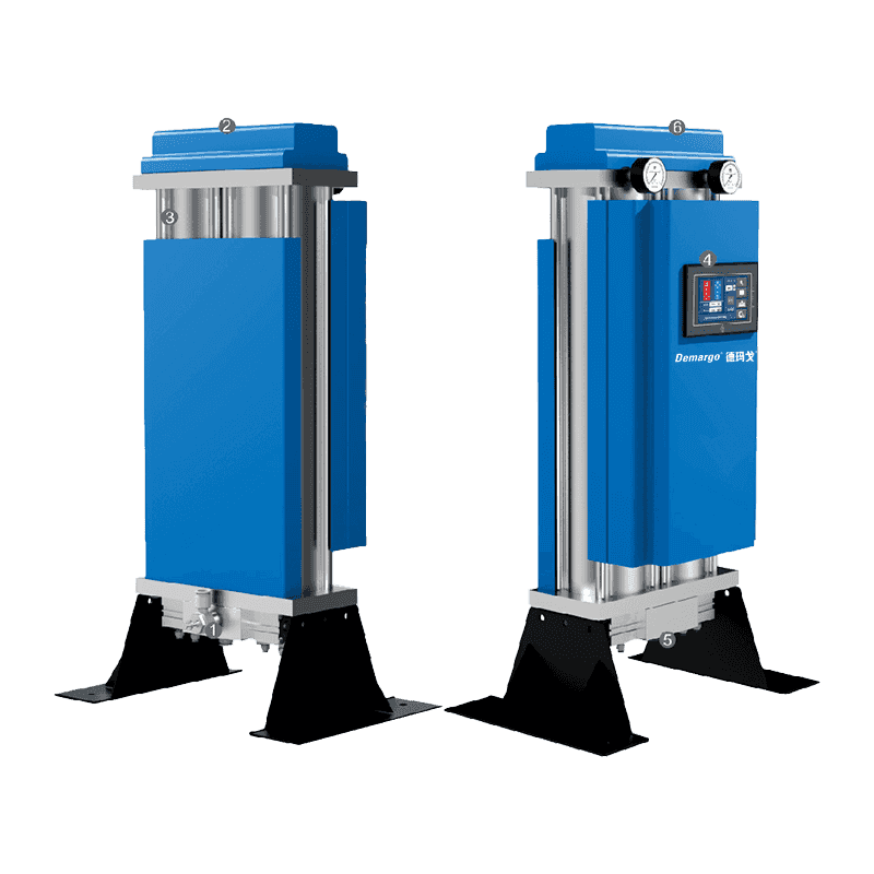 7.吸着剤は分子ふるいを使用して、出口の圧縮空気露点の安定性を確保します。
