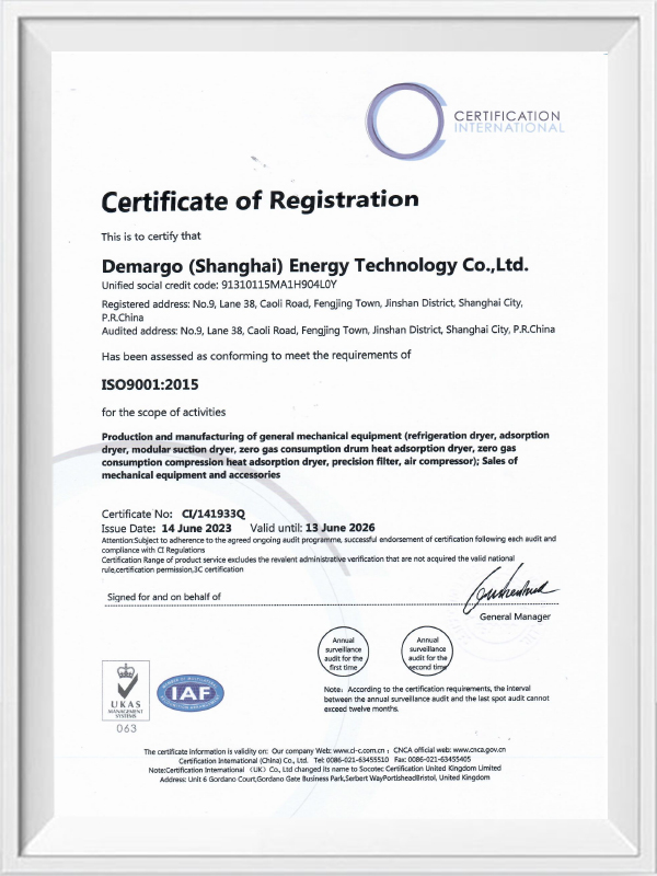 もっと見る圧縮空気浄化装置の分野では、Demargo(Shanghai)Energy Saving Technology Co.、Ltd。は、その卓越した技術と革新的な強さを備えた業界のリーダーになりました。特に高温や高圧などの極端な環境では、Demargoの油水分離器は優れたパフォーマンスと信頼性を実証し、大多数のユーザーの信頼と賞賛を獲得しています。
